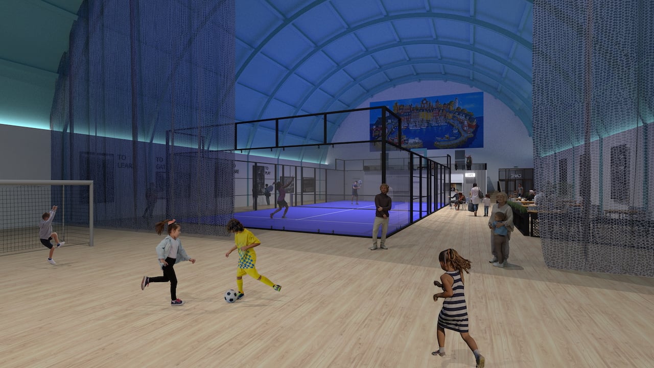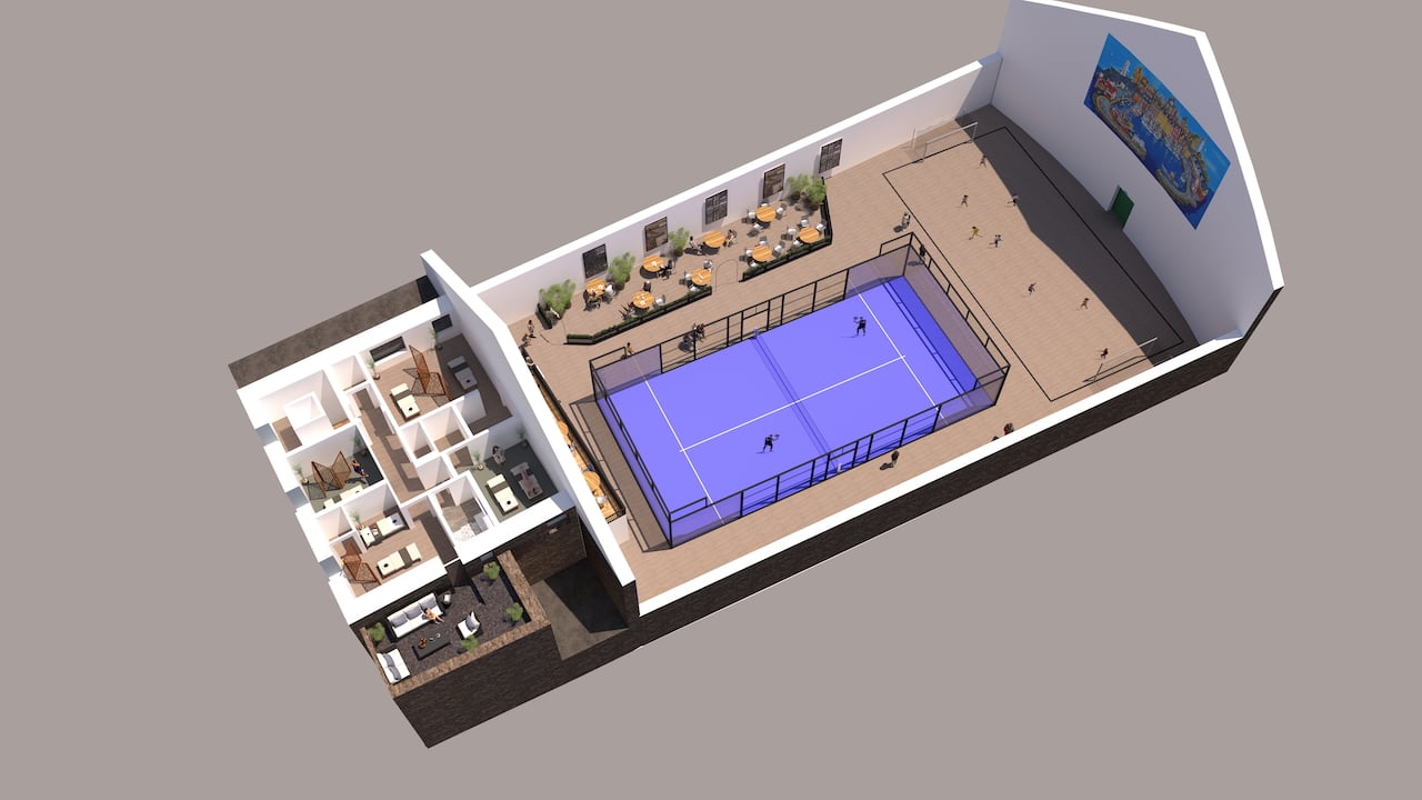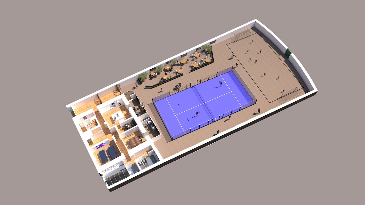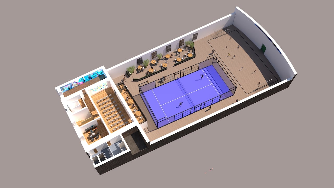 Here is a architects drawing of the space which included the Padel court in the hall