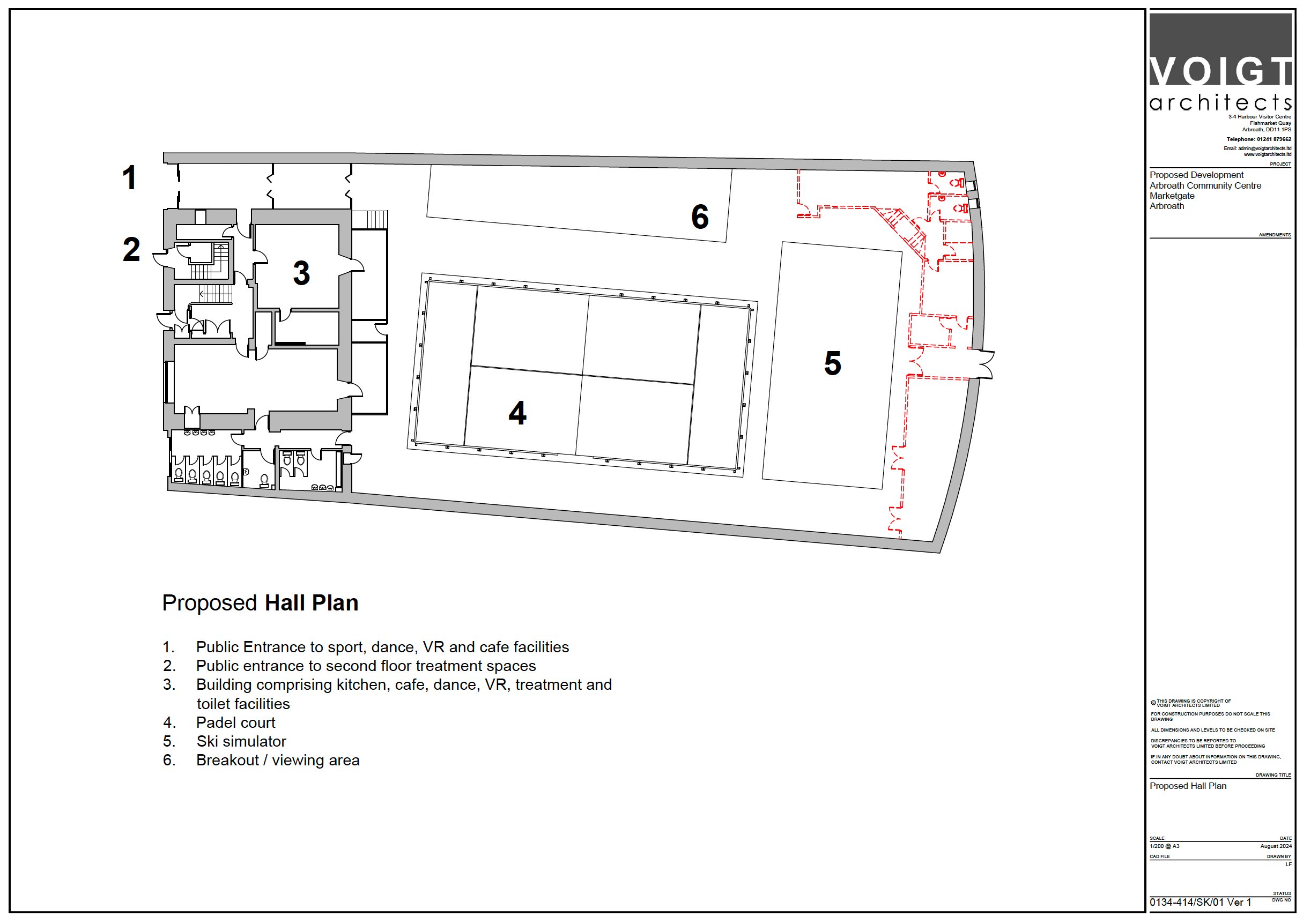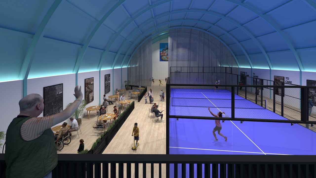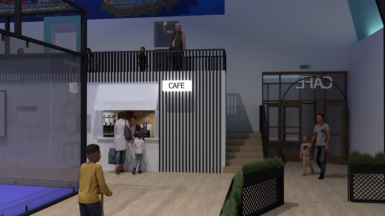 Here is a architects drawing of the space which included the Padel court in the hall